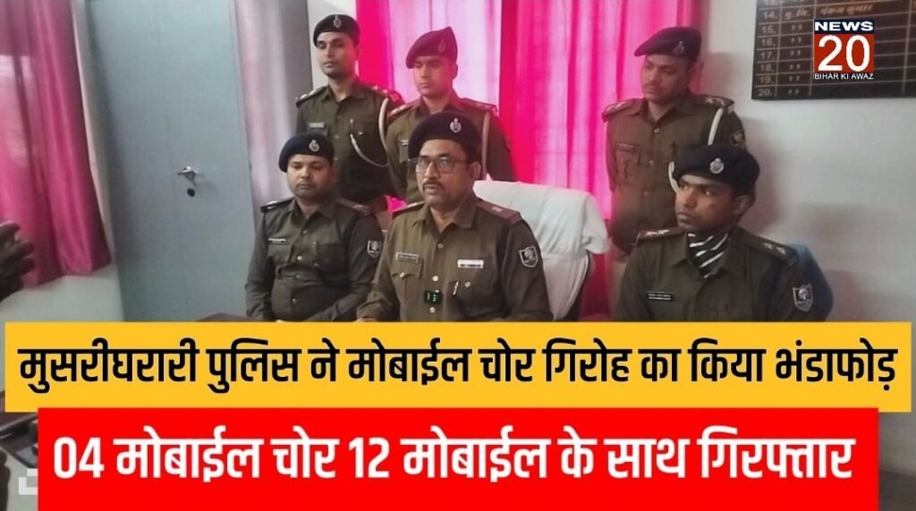 गिरफ्तार चोरों की पहचान मुफ्फसिल थाना क्षेत्र के मोहनपुर वार्ड 9 निवासी रामसेवक राय के 20 वर्षिय पुत्र दीपक कुमार, रहीमपुर रूदौली वार्ड 42 निवासी निरंजन दास के 22 वर्षिय पुत्र नंद किशोर कुमार उर्फ नंदा उर्फ निरज, तथा सुशील राय के 19 वर्षिय पुत्र रोहित कुमार, व मोहनपुर वार्ड 9 निवासी, रामसेवक राय के 22 वर्षिय पुत्र मंतोष कुमार के रूप में की गयी है। उक्त जानकारी एएसपी सदर संजय कुमार पांडे ने, मुसरीघरारी थाना पर आयोजित प्रेस वार्ता के दौरान दिया। प्रेस वार्ता में मौजूद पत्रकारों को जानकारी देते हुए उन्होंने कहा कि, मुसरीघरारी थाना क्षेत्र के हरपुर एलौथ गांव स्थित, रूदौली चौक पर 22/23 जनवरी की देर रात अज्ञात चोरों ने, सी डॉट इंटरप्राईजेज नामक मोबाईल दुकान के सिढ़ी के गेट का ताला, एवं दुकान का शटर तोड़कर दुकान में रखे विभिन्न प्रकार के मोबाईल उपकरण एवं मोबाईल की चोरी की घटना को अंजाम दिया था। जिसके बाद मुसरीघरारी पुलिस ने उक्त मामले में मुसरीघरारी थाना कांड संख्या 08/24 दर्ज कर अनुसंधान प्रारंभ कर दिया। तत्पश्चात इस घटना के सफल उद्भेदन के लिए उनके नेतृत्व में, एक पुलिस टीम का गठन कर मामले की जांच पड़ताल शुरू कर दी गयी। अनुसंधान के क्रम में ही प्राप्त मानवीय आसुचना व तकनीकी अनुसंधान के आधार पर, कांड में संलिप्त चार अपराधकर्मियों को गिरफ्तार कर लिया। गिरफ्तार बदमाशों से जब पुछताछ की गयी तो, उसने इस घटना में अपनी संलिप्ता स्वीकार करते हुए आवश्यक जानकारी भी दिया। जिसके निशानदेही पर इस घटना में चोरी गयी 12 मोबाईल व मोबाईल उपकरण बरामद कर लिया गया। जिसके बाद गिरफ्तार सभी चोरों को आवश्यक कागजी कार्रवाई के बाद न्यायिक हिरासत में भेज दिया गया। इस घटना के सफल उद्भेदन में थानाध्यक्ष मुसरीघरारीपंकज कुमार, पुलिस अवर निरीक्षक प्रमोद कुमार मंडल, प्रशिक्षु पुलिस अवर निरीक्षक अमित कुमार, शैलेन्द्र कुमार, तकनीकी शाखा से संतोष कुमार आदि का कार्य काफी सराहनीय रहा।