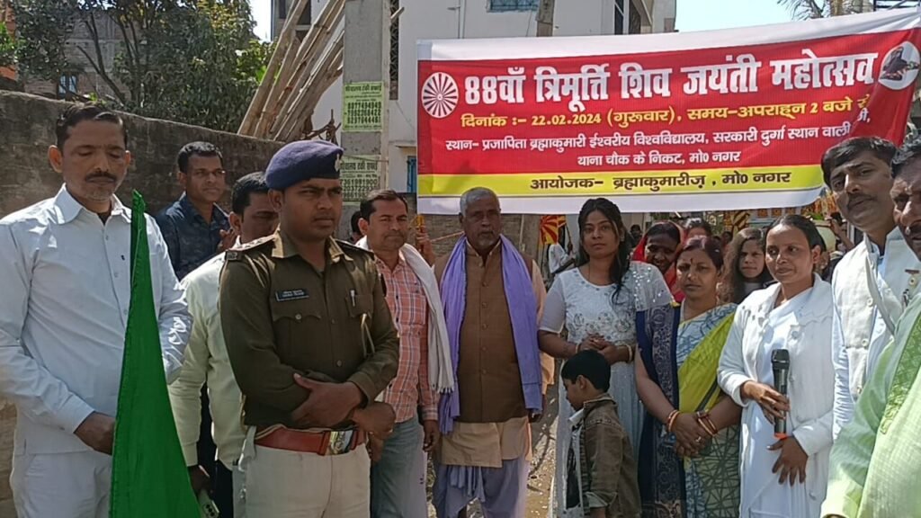 रामरूप राय/समस्तीपुर: मोहिउद्दीननगर थाना क्षेत्र के थाना चौक के निकट, प्रजापिता ब्रह्माकुमारी ईश्वरीय विश्व विद्यालय के द्वारा, आयोजित 88वें त्रिमूर्ति शिव जयंती महोत्सव के उपलक्ष्य में, एक भव्य शोभायात्रा निकाली गई। जिसमें अमरनाथ शिव बाबा एवं विश्व महाराजन श्री नारायण व विश्व महारानी श्री लक्ष्मी जी की झांकी बनाई गई, और सैकड़ों भाई-बहन शान्तिदूत बनकर स्थानीय सेवाकेंद्र से चलकर शहर के प्रमुख मार्गों का भ्रमण करते हुए वापस स्थानीय सेवाकेंद्र पर आकर यात्रा को संपन्न किए।