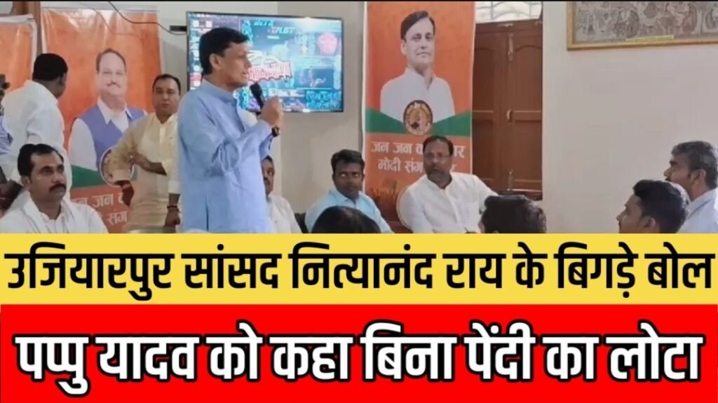नसीब लाल झा/समस्तीपुर: “मोदी संग बिहार” विडियो सॉन्ग लांचिंग के दौरान जिले के हलई ओपी क्षेत्र स्थित, अपने आवास पर नित्यानन्द राय ने पप्पु यादव को, बिना पेंदी का लोटा बोल दिया, इस दौरान नित्यानन्द राय ने यह भी कहा है कि, प्रधानमंत्री के विकास की बदौलत इस बार वहलोग बिहार की सभी 40 सीट हासिल करने जा रहे हैं। जिसके कारण महागठबंधन का सुपरा साफ होने जा रहा है।