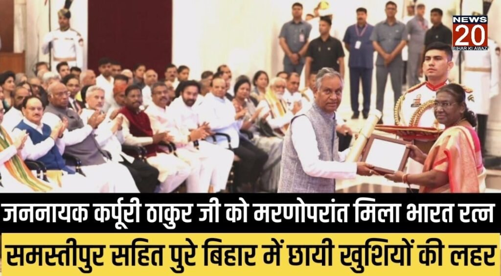 विद्याकर झा/समस्तीपुर: देश की राजधानी दिल्ली स्थित राष्ट्रपति भवन में आयोजित, एक सादे समारोह में जननायक कर्पूरी ठाकुर जी को, मरणोपरांत भारत रत्न सम्मान देने पर जिला वासियों ने भारत के राष्ट्रपति, भारत के प्रधानमंत्री व बिहार के मुख्यमंत्री नीतीश कुमार जी का आभार प्रकट किया है।