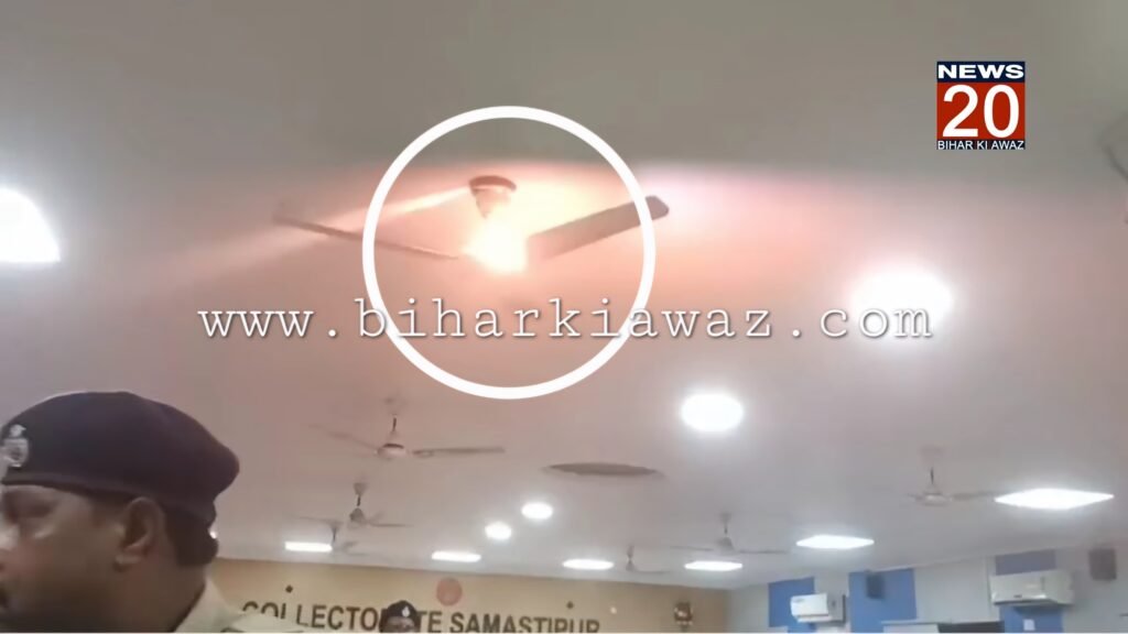 अरविन्द कुमार/अमित कुमार:[समस्तीपुर] जिला मुख्यालय स्थित समाहरणालय सभागार में, गुरुवार 11 जुलाई की दोपहर करीब 01:30 बजे अचानक उस समय अफरा-तफरी का माहौल हो गया, जब दरभंगा प्रक्षेत्र के डीआईजी बाबूराम के द्वारा, जिला मुख्यालय स्थित समाहरणालय के सभा कक्ष में, जिले के सभी वरीय पुलिस पदाधिकारी के साथ की जा रही, समीक्षात्मक बैठक के दौरान ही, सभा कक्ष के छत से लगे पंखे में अचानक हुई शॉर्ट सर्किट से आग लग गयी।