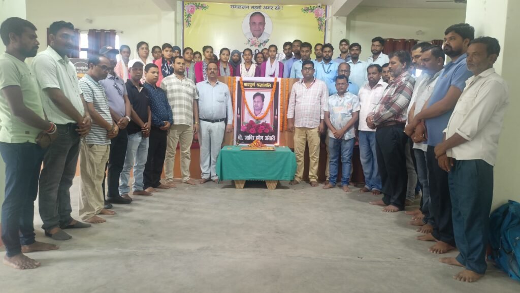 श्रद्धांजलि सभा में असिस्टेंट प्रोफेसर डॉ निर्मल कुमार चंचल, डॉ सविता कुमारी, केशव चौधरी, सत्यम कुमार, उमाशंकर चंदन, मुकेश राय, डीएलएड विभागाध्यक्ष मोहम्मद इमामुद्दीन, राजेश कुमार गिरी, कुमारी दीपा, रूपम कुमारी, योगेश कुमार, हसन राजा अंसारी, सर्वेश सुमन, अनिल कुमार प्रभात, नीलम कुमारी, कार्यालय अधीक्षक पल्लव पारस, मीडिया इंचार्ज रूपक कौशल, रश्मि रोजी, दिनेश मिश्रा, अजय शर्मा, संतोष सुमन, श्वेता कर्ण, पंकज गुप्ता, किरण चौधरी, प्रदीप कुमार, सुनील कुमार, बिरजू पासवान, पप्पू कुमार सहित बीएड एवं डीएलएड के प्रशिक्षु छात्र छात्राएं मौजूद रहीं।