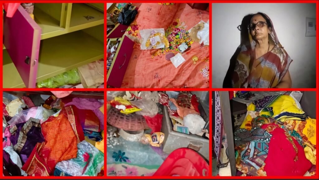 इसी बीच उन्हें पड़ोसियों के द्वारा यह सुचना मिली कि, घर को खाली पाकर अज्ञात चोरों ने उसे अपना निशाना बना लिया है। सुचना मिलने के बाद जब वह घर पहुंची तो देखा कि, उनके घर का सारा सामान बिखड़ा पड़ा है, तथा कुछ नकदी व कीमती कपड़े सहित गहने भी गायब हैं।