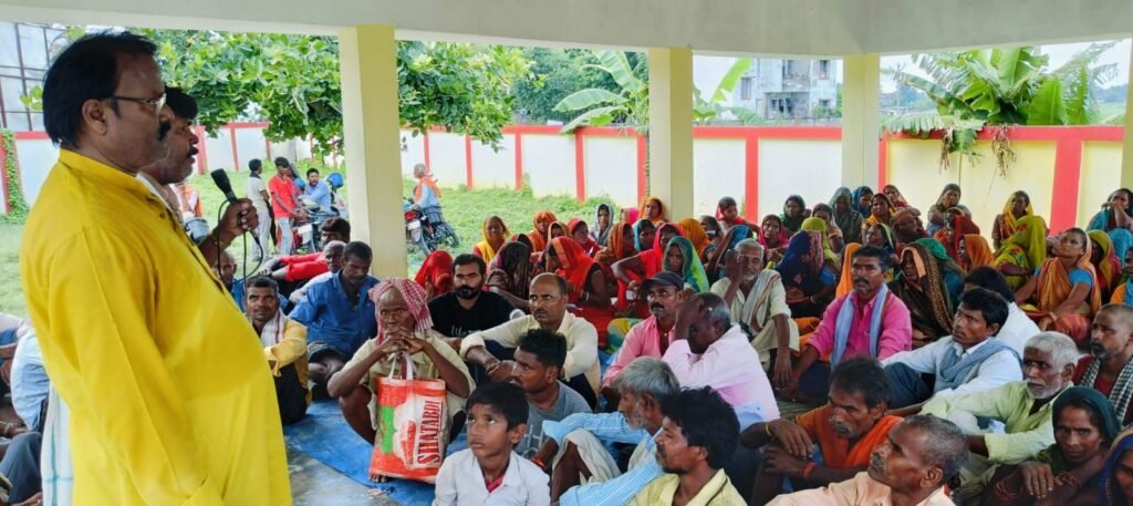 अरविन्द कुमार/अमित कुमार:[खानपुर] खानपुर अंचल कार्यालय परिसर में, भाकपा माले खानपुर प्रखंड कमिटी के सचिव, सत्यनारायण महतो के नेतृत्व में सोमवार 09 अगस्त को, भूमि सर्वे को पारदर्शी बनाने, सभी गरीबों को दो दो लाख रुपए आर्थिक सहायता देने, 70 हजार रूपए से कम का आय प्रमाण पत्र निर्गत करने, सभी को पक्का मकान देने, स्मार्ट मीटर पर रोक लगाने, 200 यूनिट फ्री बिजली देने, सभी भूमिहीन परिवारों को 05 डिसमिल जमीन देने, जीविका दीदियों एवं स्वयं सहायता समूह की महिलाओं का ऋण माफ करने, मनरेगा में 200 दिन काम एवं 600 रूपए दैनिक मजदूरी देने सहित अन्य मांगों को लेकर जोरदार प्रदर्शन किया गया।