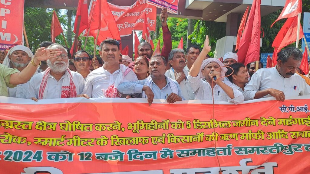 जिसके बाद सुरक्षाकर्मियों ने समाहरणालय के मेन गेट को बंद कर दिया। जिला कार्यालय से निकली यह विरोध मार्च समाहरणालय के मुख्य द्वार पर पहुंचकर एक सभा में तब्दील हो गया। आयोजित इस सभा को संबोधित करते हुए वक्ताओं ने कहा कि, बिहार की जनता काफी परेशान है। सुखा का बड़ा प्रभाव है, लेकिन बिहार की सरकार कोई भी राहत देने के लिए तत्पर दिखाई नहीं दे रही है। स्मार्ट मीटर के नाम पर तबाही मची हुई है। लोकसभा चुनाव के दौरान बिहार के मुख्यमंत्री नितीश कुमार तथा प्रधानमंत्री नरेंद्र मोदी ने कहा था कि, लोकसभा चुनाव के बाद बिहार में 200 यूनिट बिजली फ्री दिया जाएगा, लेकिन कुछ भी नही हुआ। वक्ताओं ने बगल के राज्य झारखंड का हवाला देते हुए कहा कि, झारखंड सरकार ने किसानों के दो लाख तक के कर्ज माफ कर दिए जाने की घोषणा की है। क्या नितिश जी यह घोषणा नही कर सकते हैं ? यही नही झारखंड सरकार ने संपूर्ण झारखंड वासियों को 200 यूनिट तक बिजली मुफ्त में देने का ऐलान किया है, क्या नितिश कुमार यह ऐलान नही कर सकते ? वक्ताओं ने हमलावर होते हुए कहा कि, बिहार में सदियों से 4 सौ रूप्ये समाजिक सुरक्षा पेंशन की राशि दी जा रही है, जबकि बगल के राज्य झारखंड में समाजिक सुरक्षा पेंशन की राशि 1000 रूपए किए जाने, तथा प्रति महीना 1000 रूपए अलग से दिए जाने का ऐलान किया है। यही नहीं! झारखंड की सरकार ने किसानों, मजदुरों, आदिवासी व गरीबों के लिए अन्य राहत की घोषणा भी की है। हरियाणा व केरला सहित दुसरे अन्य राज्यों की भी सरकार और भी ज्यादा राहत दे रहे हैं, लेकिन बिहार में नितिश जी एक भी काम करने के लिए तैयार नही हैं, और आज जमीन सर्वे के नाम पर गरीबों में काफी परेशानी महसुस हो रहा है। इस दौरान वक्ताओं ने यह भी कहा कि, जमीन सर्वे के नाम पर धांधली हो रही है, लूट हो रहा है। जमीन का सर्वे सही रूप से तब होगा जब तमाम गरीबों को, जिनके पास वास भूमि और आवास भूमि नहीं है, उनको 10 डिसमिल जमीन यह देंगे, जिनके पास वासगत का पर्चा नहीं है, उनको वासीगत का पर्चा यह देंगे! जो बेदखल है उन्हें दखल कराएंगे! तभी सही मामले में भूमि का सर्वेक्षण हो सकता है। बिहार सरकार पर हमलावर होते हुए उन्होंने कहा कि, नितिश जी! अगर आप सरकार चलाने की स्थिति में नहीं हैं, तो आप नैतिक रूप से गद्दी छोड़ दीजिए, नहीं तो आने वाले दिनों में हमारा आंदोलन और भी ज्यादा तेज होगा। आज बिहार में भ्रष्टाचार चरम तक फैल गया है। जन वितरण में लोगों का नाम छांटा जा रहा है। नए राशन कार्ड में नाम नहीं जोड़ा जा रहा है। लोगों को अनाज नहीं मिल रहा है। बेरोजगार लोगों को रोजगार नही मिल रहा है। बेरोजगार नौजवानों को रोजगार देने के नाम पर सरकार चुप्पी साधे हुए है। इसलिए बेरोजगार नौजवानों की बहाली, तथा जिन बेरोजगारों का तत्काल बहाली नही हो रहा है,