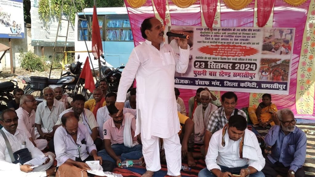 अरविन्द कुमार/अमित कुमार:( समस्तीपुर) बिहार में सत्ता संरक्षित बढ़ते अपराध के खिलाफ, भाकपा-माले एवं खेग्रामस के बैनर तले राज्य कमेटी के आह्वान पर, सोमवार 23 सितम्बर को सरकारी बस स्टैंड से प्रतिरोध मार्च निकाला गया। यह प्रतिरोध मार्च पोस्ट ऑफ़िस, स्टेडियम गोलंबर, समाहरणालय होते हुए पुनः पोस्ट आफिस के पास पहुंचकर एक सभा में तब्दील हो गया।