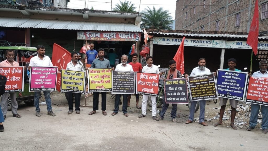 अरविन्द कुमार/नसीब लाल झा:( समस्तीपुर) जिले के ताजपुर प्रखंड अंतर्गत फलमंडी से विद्यूत उपभोक्ताओं ने भाकपा माले, आरवाईए के बैनर तले प्रीपेड स्मार्ट मीटर पर रोक लगाने, 24 घंटे बिजली आपूर्ति की व्यवस्था करने, विद्यूत सेवा शुल्क, मीटर शुल्क, एवं लोड शुल्क पर रोक लगाने, झारखंड के तरह बिहार में भी 2 सौ यूनिट फ्री बिजली देने आदि मांगों को लेकर जुलूस निकाला, जो बाजार क्षेत्र में नारे लगाकर भ्रमण करते हुए पुनः फलमंडी पहुंचकर जुलूस सभा में तब्दील हो गया।