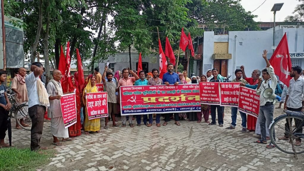 अरविन्द कुमार/अमित कुमार:( समस्तीपुर) ताजपुर प्रखंड मुख्यालय स्थित प्रखंड सह अंचल कार्यालय परिसर में दलित-गरीबों द्वारा जमा किये गये आवेदन पत्र पर 72 हजार से कम का आय प्रमाण-पत्र बनाने, भूमिहीनों को वासभूमि देने, कच्चा मकान वाले को पक्का मकान देने,