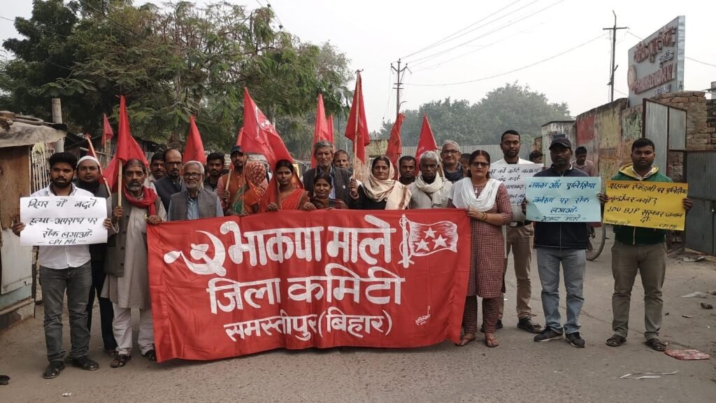 अरविन्द कुमार:(समस्तीपुर) जिले के मालगोदाम चौक स्थित जिला कार्यालय से भाकपा माले व ईंसाफ मंच के सदस्यों ने प्रतिरोध मार्च निकाला। भाकपा माले जिला कार्यालय से अपने हाथों में झंडा-बैनर लिए निकाली गयी यह प्रतिरोध मार्च बाजार क्षेत्र के मुख्य मार्गों से गुजरने के बाद स्टेशन चौक पहुंचकर, भाकपा माले जिला सचिव उमेश कुमार की अध्यक्षता में एक सभा में तब्दील हो गया।