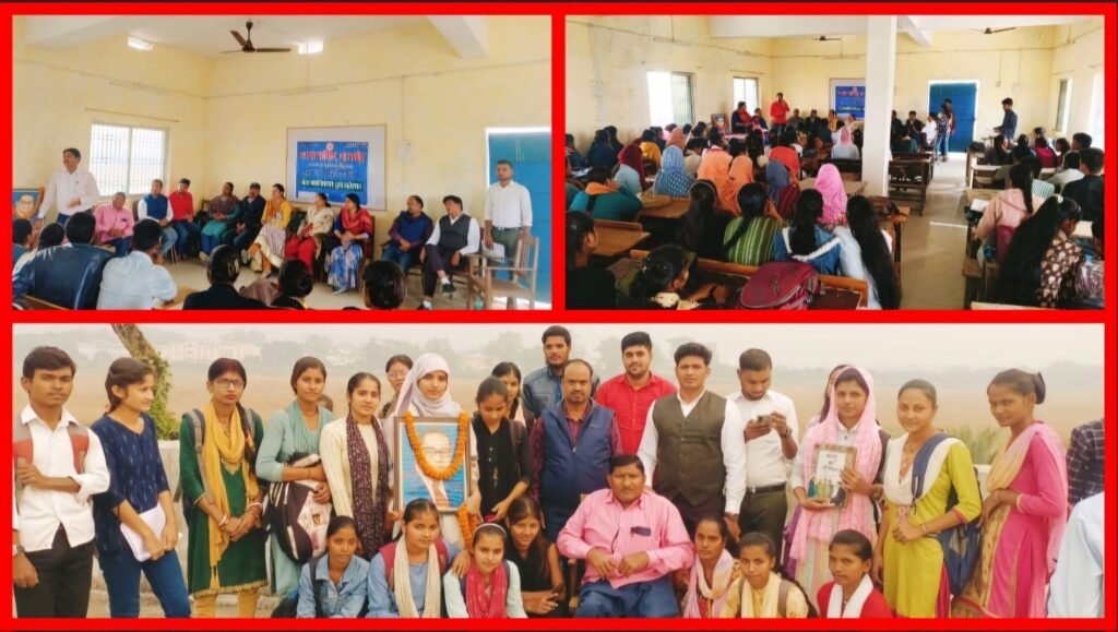 इस पावन अवसर पर महाविद्यालय परिसर में क्वीज प्रतियोगिता व भारतीय संविधान दिवस पर सेमिनार हॉल में संगोष्ठी का भी आयोजन किया गया। जिसकी अध्यक्षता हिंदी विभागाध्यक्ष प्रो डॉ. वृंदावन लाल जाटव व संचालन हिंदी विभाग के छात्र व लेखक शिवम सरोज ने किया। संगोष्ठी का विधिवत उद्घाटन करते हुए महाविद्यालय के समाजशास्त्र विभागाध्यक्ष प्रो. डॉ. राजेश कुमार यादव ने कहा कि, पुरी दुनिया में भारत सबसे बडा़ लोकतांत्रिक देश है।
