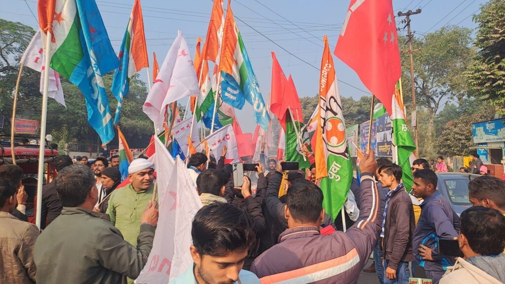 मौके पर कांगेस के मुकेश कुमार चौधरी, रितेश कुमार चौधरी, राजन कुमार वर्मा, चंदन कुमार, वामदल के सुनील कुमार, रौशन यादव समेत सैकड़ों की संख्या में छात्र व युवा मोर्चा के कार्यकर्ता मौजूद थे।