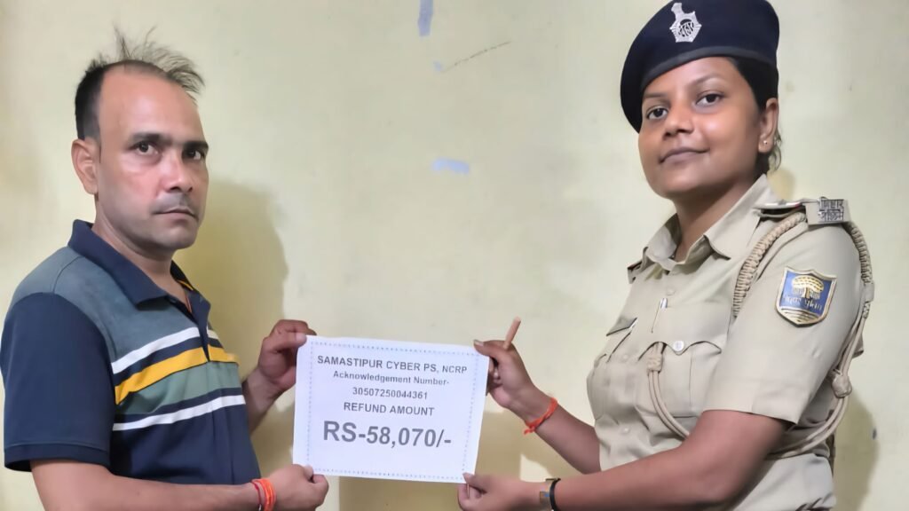 рд╕рдорд╕реНрддреАрдкреБрд░ред рдЬрд┐рд▓рд╛ рдореБрдЦреНрдпрд╛рд▓рдп рд╕реНрдерд┐рдд рд╕рд╛рдИрдмрд░ рдерд╛рдирд╛ рдХреЗ рдерд╛рдирд╛рдзреНрдпрдХреНрд╖ рд╕рд╣ рдПрд╕рдбреАрдкреАрдУ рджреБрд░реНрдЧреЗрд╢ рджреАрдкрдХ рдиреЗ, рдПрдХ рдмрдбрд╝реА рдХрд╛рд░реНрд░рд╡рд╛рдИ рдХрд░рддреЗ рд╣реБрдП, рдореЛрд╣рдирдкреБрд░ рдерд╛рдирд╛ рдХреНрд╖реЗрддреНрд░ рдХреЗ рдбреБрдорд░реА рдЧрд╛рдВрд╡ рдирд┐рд╡рд╛рд╕реА, рд░рд╛рдорд╛рдзрд╛рд░ рд░рд╛рдп рдХреЗ рдкреБрддреНрд░ рдЬрд┐рддреЗрдВрджреНрд░ рдХреБрдорд╛рд░ рд░рд╛рдп рдХреЗ рдмреИрдВрдХ рдЦрд╛рддреЗ рд╕реЗ рд╕рд╛рдИрдмрд░ рдлреНрд░реЙрдб рдХреЗ рджреНрд╡рд╛рд░рд╛ рдЕрд╡реИрдз рддрд░реАрдХреЗ рд╕реЗ рдирд┐рдХрд╛рд╕реА рдХреА рдЧрдпреА рд░рд╛рд╢рд┐ 58 рд╣рдЬрд╛рд░ 70 рд░реВрдкрдП рд╡рд╛рдкрд╕ рдкрд┐рдбрд╝рд┐рдд рд╡реНрдпрдХреНрддрд┐ рдХреЗ рдмреИрдВрдХ рдЦрд╛рддреЗ рдореЗрдВ рд╡рд╛рдкрд╕ рдХрд░рд╛ рджрд┐рдпрд╛ рдЧрдпрд╛ред