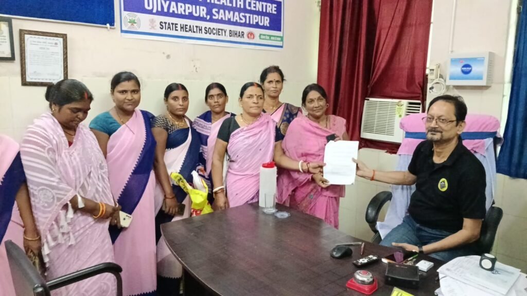 समस्तीपुर। जिले के उजियारपुर सामुदायिक स्वास्थ्य केंद्र परिसर में आशा फैसिलेटेटर व आशा कर्मियों ने, बिहार राज्य आशा सह आशा फैसिलेटर संघ के आह्वान पर शनिवार 20 सितम्बर को जोरदार एक दिवसीय धरना प्रदर्शन किया।