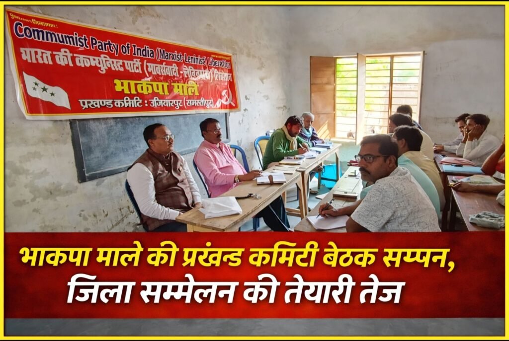 समस्तीपुर। जिले के उजियारपुर प्रखंड अंतर्गत पतैली कोरबद्धा बालिका उच्च विद्यालय परिसर में, भाकपा माले प्रखंड कमिटी उजियारपुर की बैठक, आज रविवार 22 मार्च को प्रखंड सचिव गंगा प्रसाद पासवान की अध्यक्षता में सम्पन्न हुई। बैठक में संगठनात्मक मजबूती और आगामी कार्यक्रमों को लेकर विस्तृत चर्चा की गई।