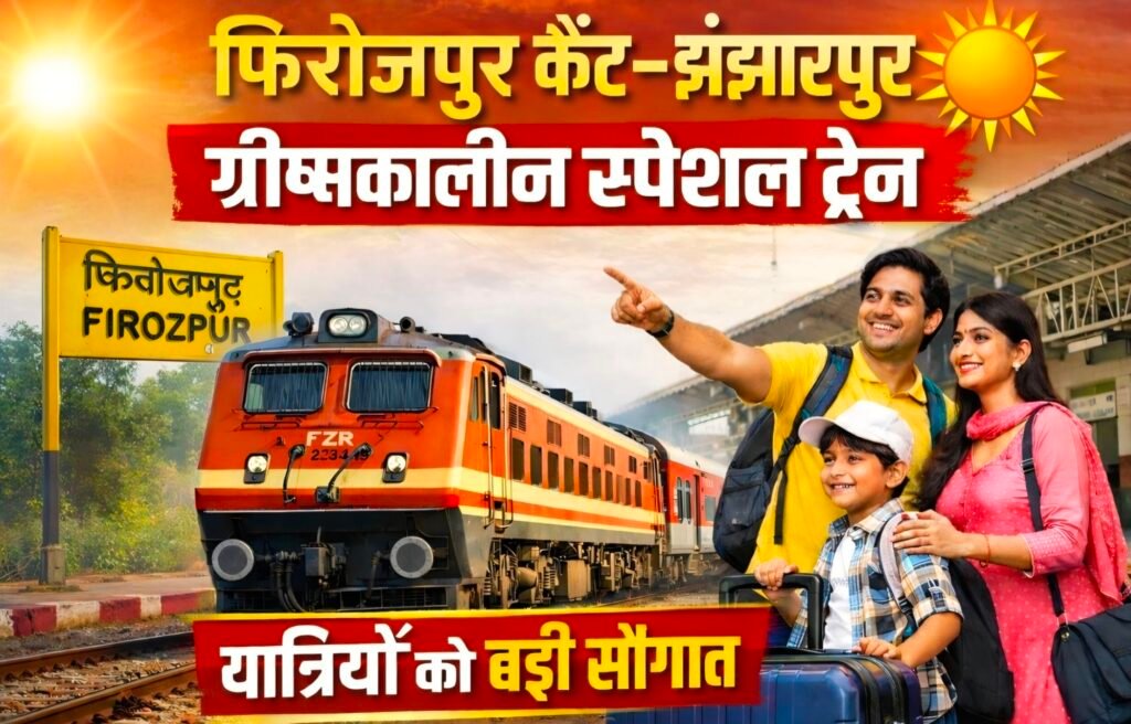 समस्तीपुर। गर्मी के मौसम में बढ़ती यात्रियों की भीड़ को देखते हुए भारतीय रेल ने यात्रियों को बड़ी सुविधा दी है। यात्रियों की सहूलियत के लिए फिरोजपुर कैंट झंझारपुर –फिरोजपुर कैंट ग्रीष्मकालीन विशेष (TOD) एक्सप्रेस ट्रेन का संचालन किया जाएगा। इस विशेष ट्रेन से समस्तीपुर मंडल सहित बिहार के यात्रियों को सीधा लाभ मिलेगा।