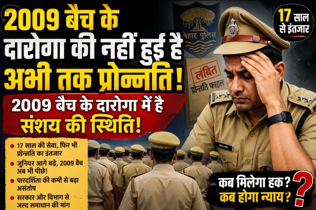 17 साल बाद भी प्रोन्नति का इंतजार, 2009 बैच के दारोगाओं में बढ़ी बेचैनी पदोन्नति नहीं मिलने से पुलिस महकमे में असंतोष, सरकार और विभाग पर उठ रहे सवाल